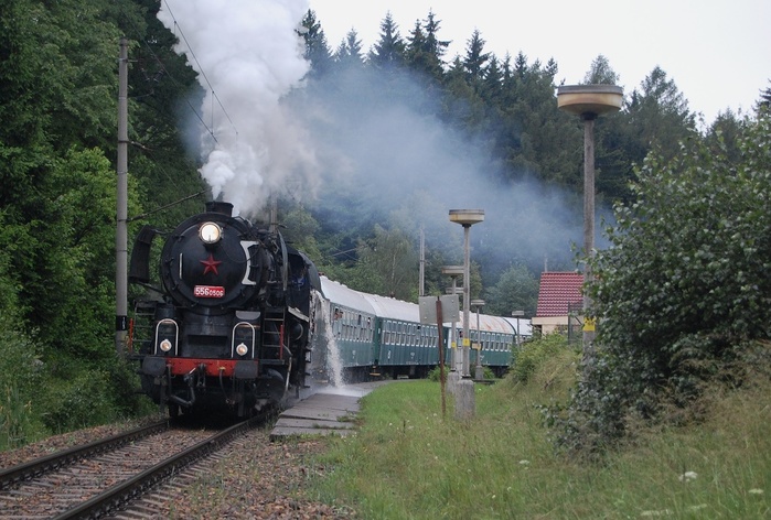 Budějovický Štokr 556.0506 zastavil v Rodvínově při 125. výročí trati z Veselí do Jihlavy v červnu 2012
