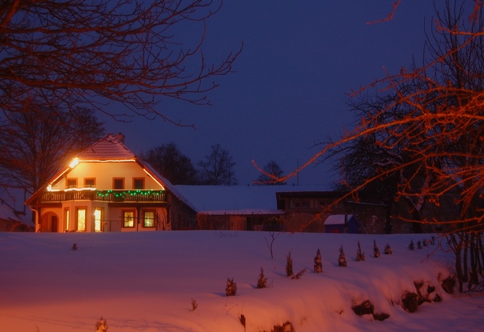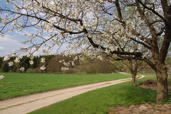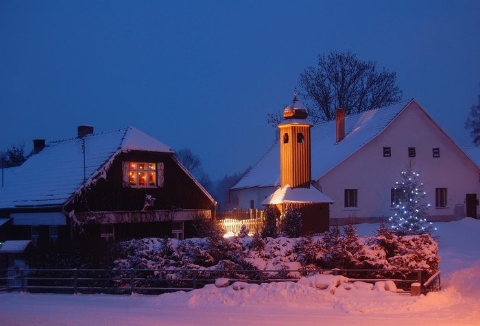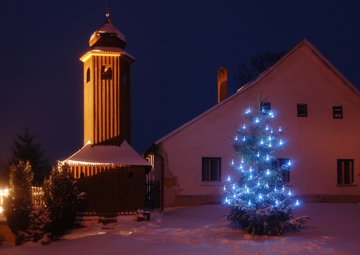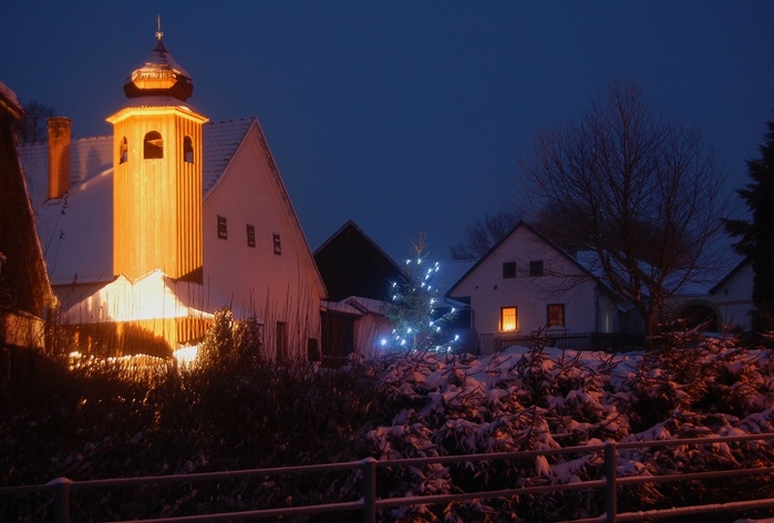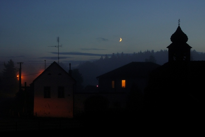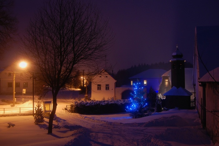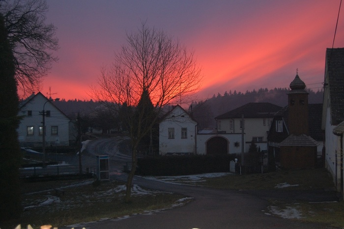 Náves - západ slunce občas dokáže vyčarovat na obloze famózní podívanou