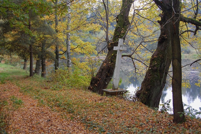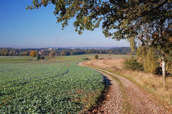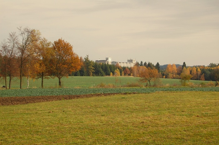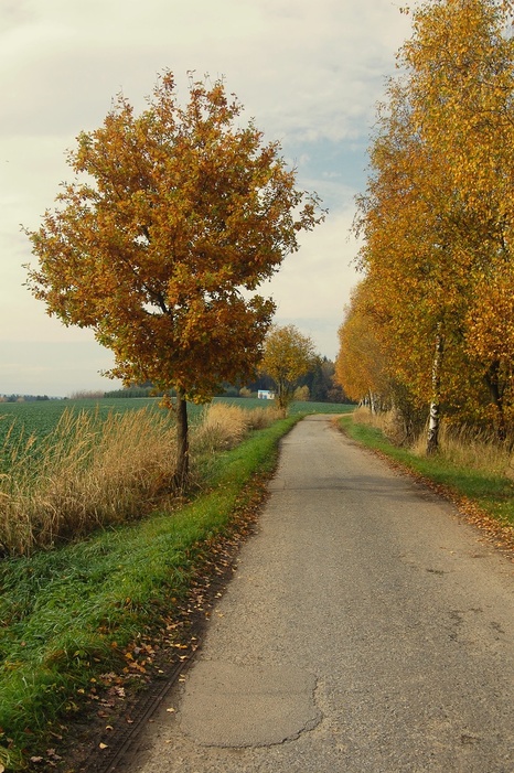 Podzim na hrázi rybníka "U křížku" kudy vedla ještě v šedesátých letech hlavní silnice na Hradec