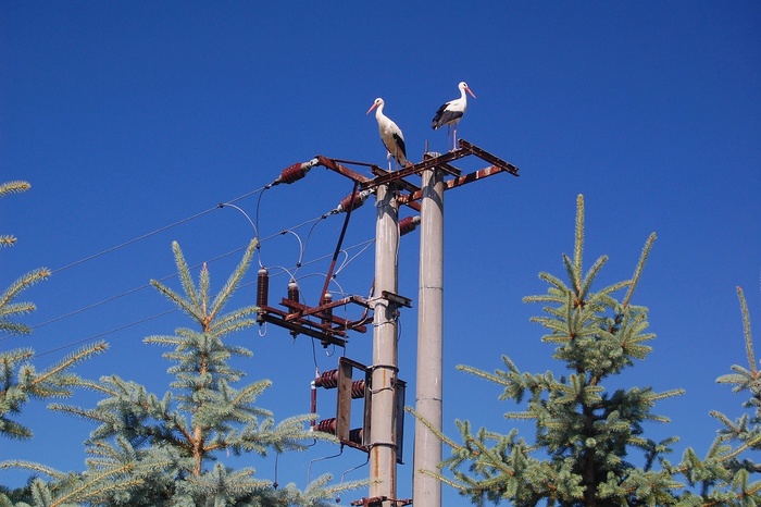Čápi u Füllsackovy pily si jako vyhlídku do okolí vybrali ne příliš bezpečné místo