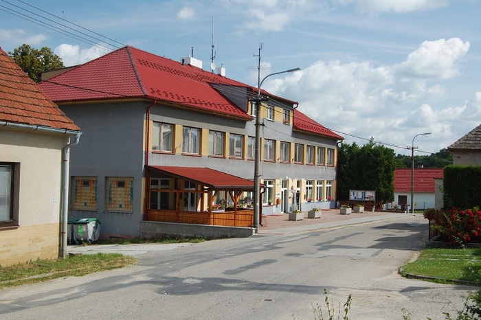 Kulturák s nově upraveným prostranstvím před domem a nově postavenou pergolou před místním pohostinstvím