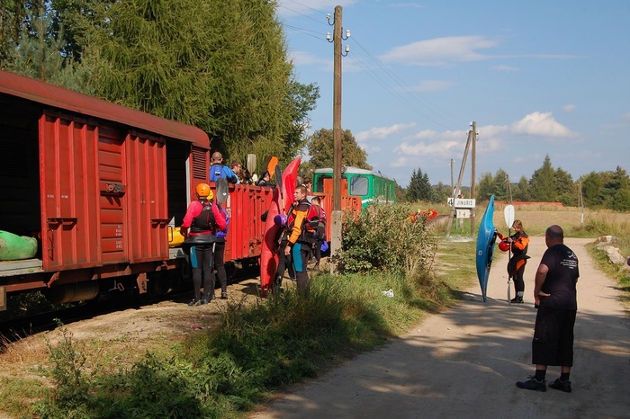 Vodáci po sjezdu Hameráku nastupují do loďovlaku, který je dopraví zpět do M. Ratmírova - vzpomínka na původní zastávku, která již změnila svůj vzhled