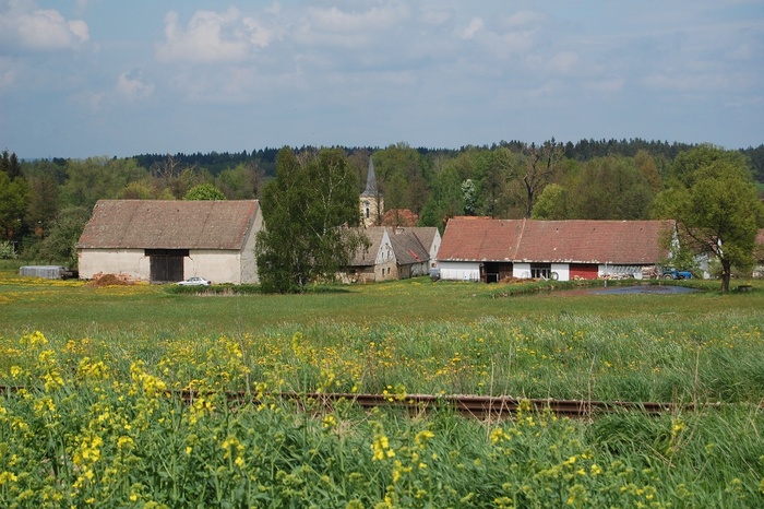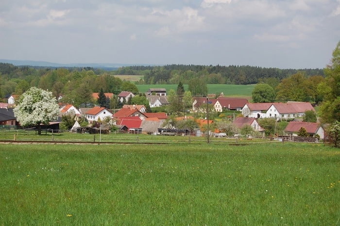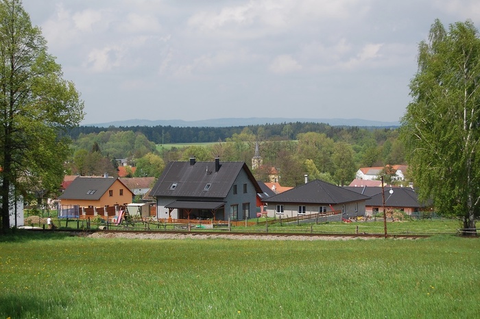 Celkový pohled na obec z kolejí