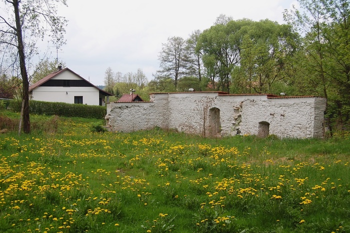 Zbytky zdiva jindřišského mlýna, zbořeného v roce 2006