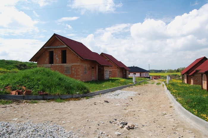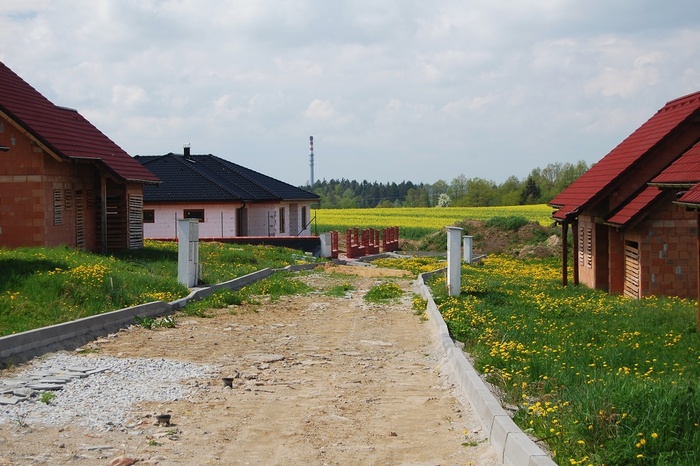 Rodinné domy v zatím rozestavěné podobě v lokalitě Pod Čihadlem, které čekají na nové rodiny