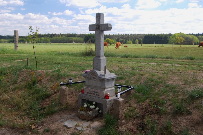 Křížek při cestě ke Smrčkově samotě tu stojí od července 2016, teprve letos došlo k slavnostnímu vysvěcení, které provedl administrátor jindřichohradeckého proboštství pan Mgr. Ivo Prokop. Křížek původně stával u samoty Sosnice, místní části obce Trojany nedaleko hraničního přechodu u Dolního Dvořiště. Po jednání s novým majitelem samoty došlo k přestěhování s pomocí pánů Milana Chmelíka a Michala Matlase, kteří převezli křížek ze Šumavy k nám.