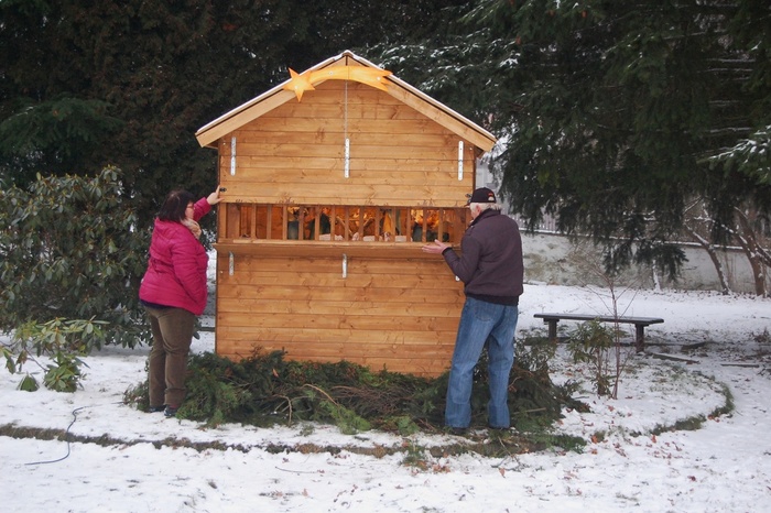 Starostka Hana Hošková s Luďou Vybíralem slavnostně otvírají nový betlém